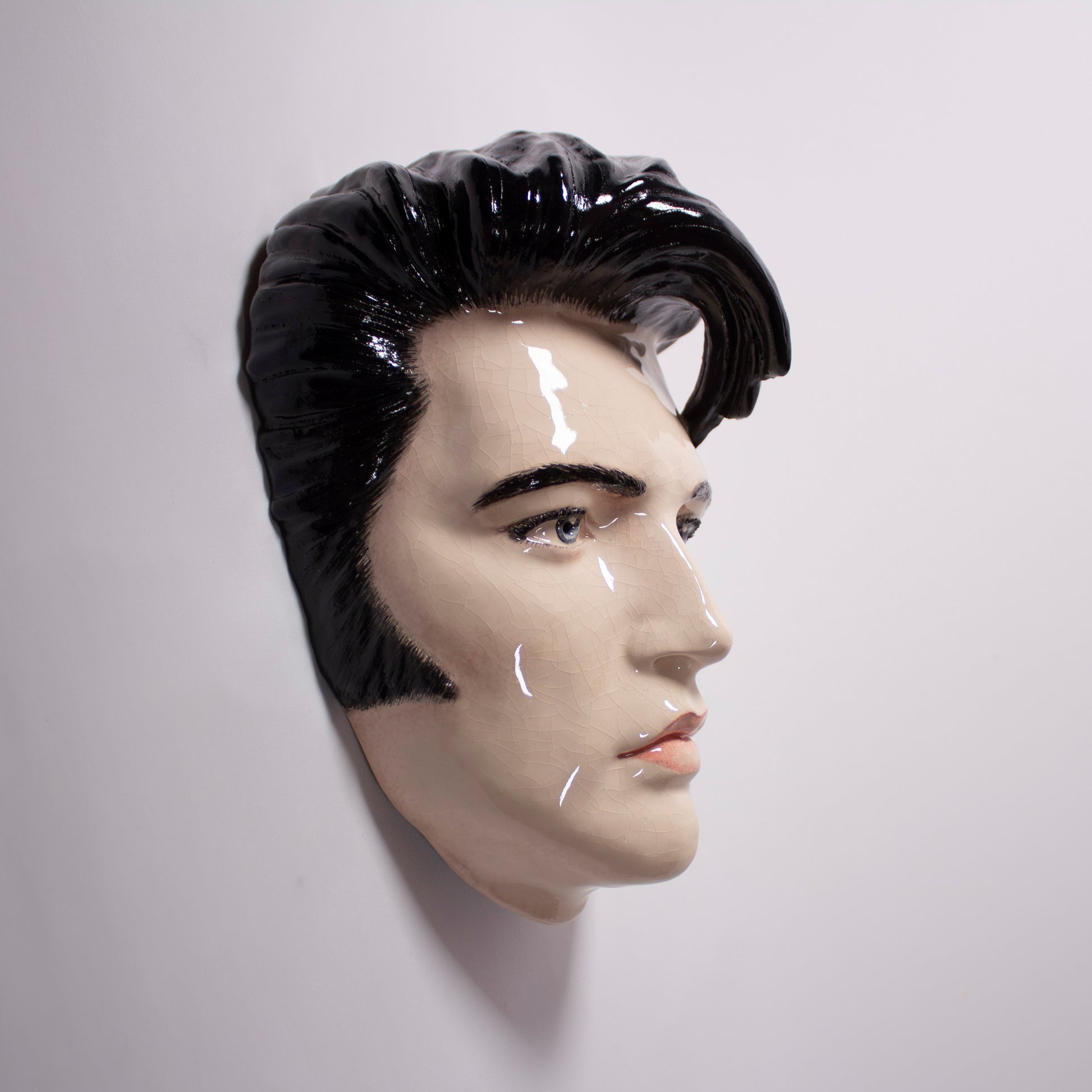 Elvis Mask Sculpture - Painted and Glazed Ceramic